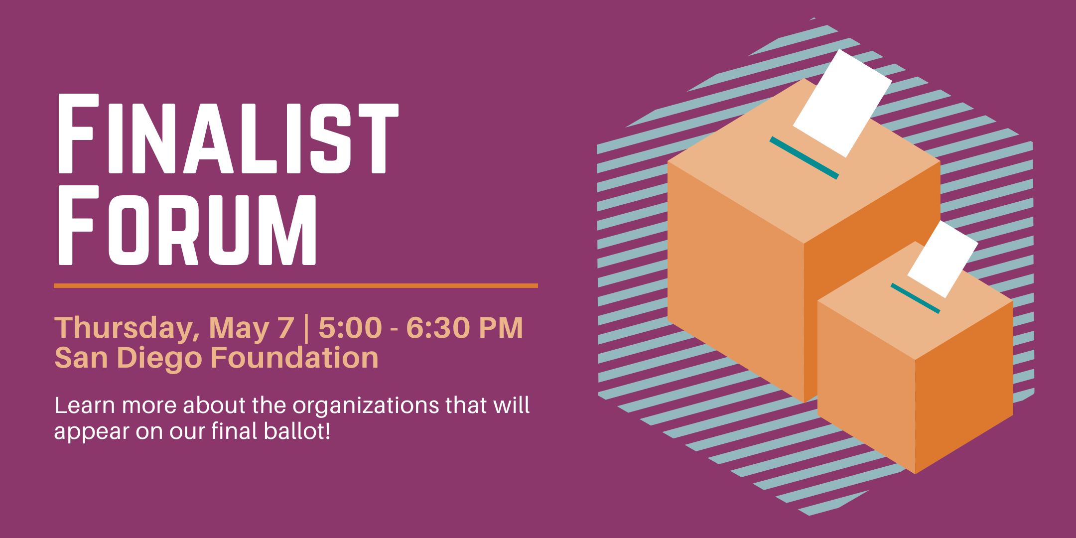 All SDWF members are invited to attend the Finalist Forum. SDWF members who participated in Site Visits will share their key takeaways in support of our finalist organizations, making this an excellent opportunity to learn about the organizations that will appear on our final ballot.